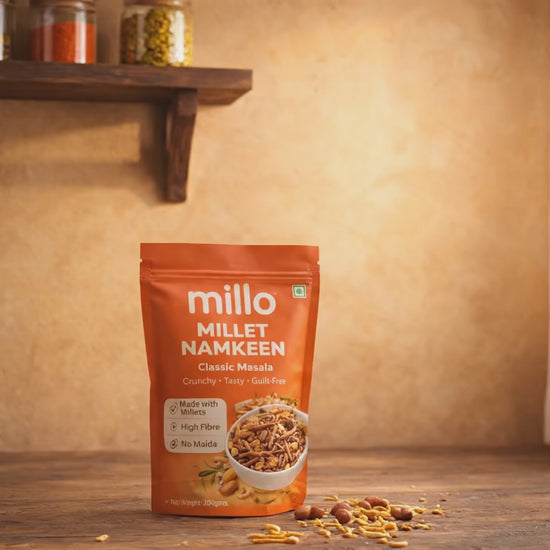 Indulge in the perfect blend of health and taste with Millo Millet Namkeen. Crafted for the modern snacker who refuses to compromise on nutrition, our namkeen brings you the ancient goodness of millets in a light, crispy, and flavor-packed avatar. It’s the "guilt-free" indulgence your tea-time has been waiting for.